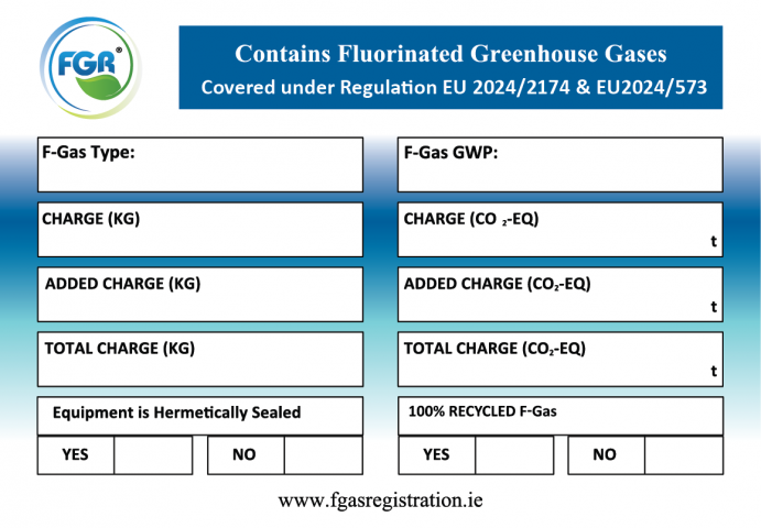 FGR-011 F-Gas Equipment Labels (Qty 100) €30.00 +VAT including P+P